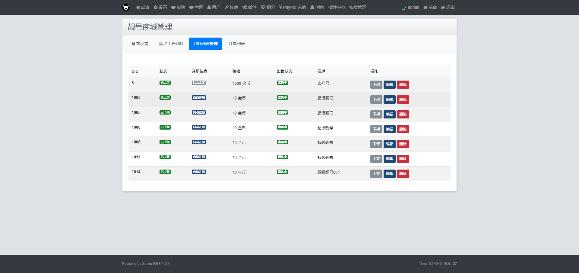 完整的UID靓号商城系统,支持UID保留、出售、购买、替换。用户可使用积分购买靓号UID,支持直接用UID登录网站。真正的靓号商城插件,插件后台设置保留的帐号系统自动注册,自动注册成功后,支持上架销售,也支持自定义帐号销售,老账号购买靓号后,老账号的数据会转移到新帐号。