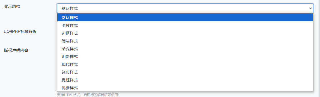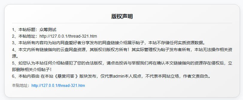 帖子内显示版权声明,支持PHP标签解析、多种显示风格