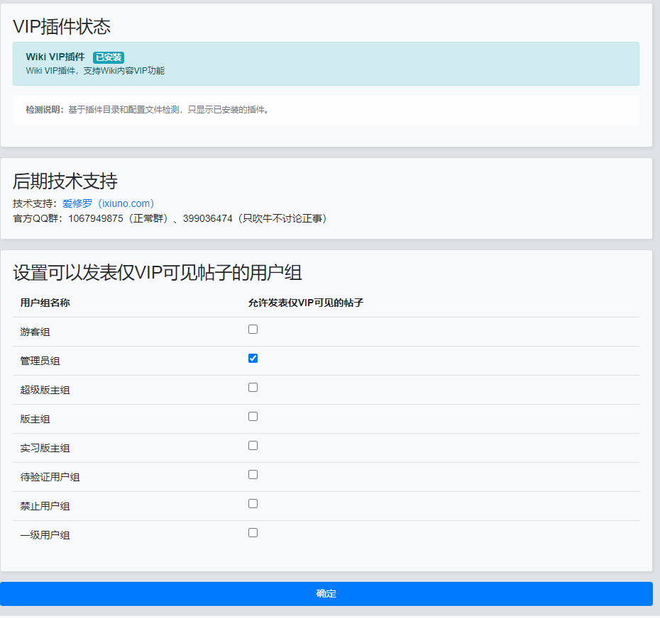 需要预先安装VIP插件v1.01或更高版本、积分插件v1.12或更高版本。支持整帖VIP可见和指定内容VIP可见(使用【ttvip】标签)。