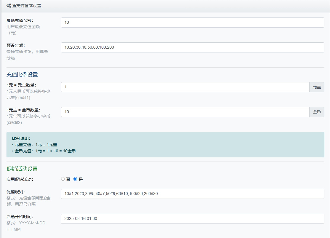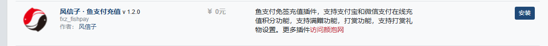 鱼支付免签充值插件,支持支付宝和微信支付在线充值积分功能,支持满赠功能,打赏功能,支持打赏礼物设置。