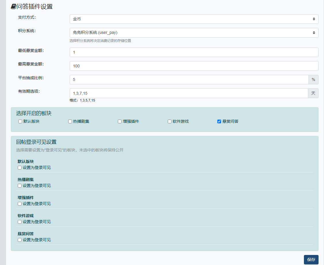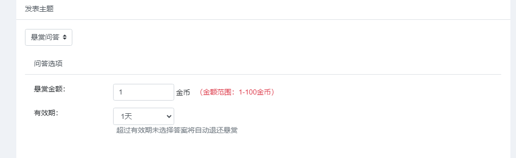 发帖时设置悬赏金额,用户回帖的答案支持销售,支持回帖登陆可见设置,支持问答功能
