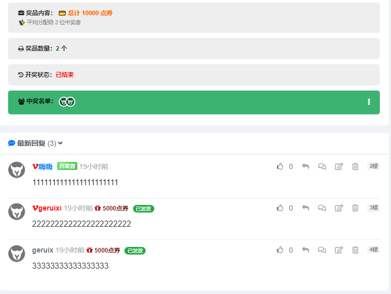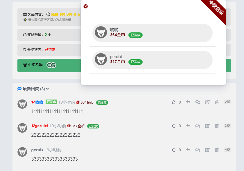 风信子·回帖抽奖插件(金币,人民币,VIP会员自动发放)